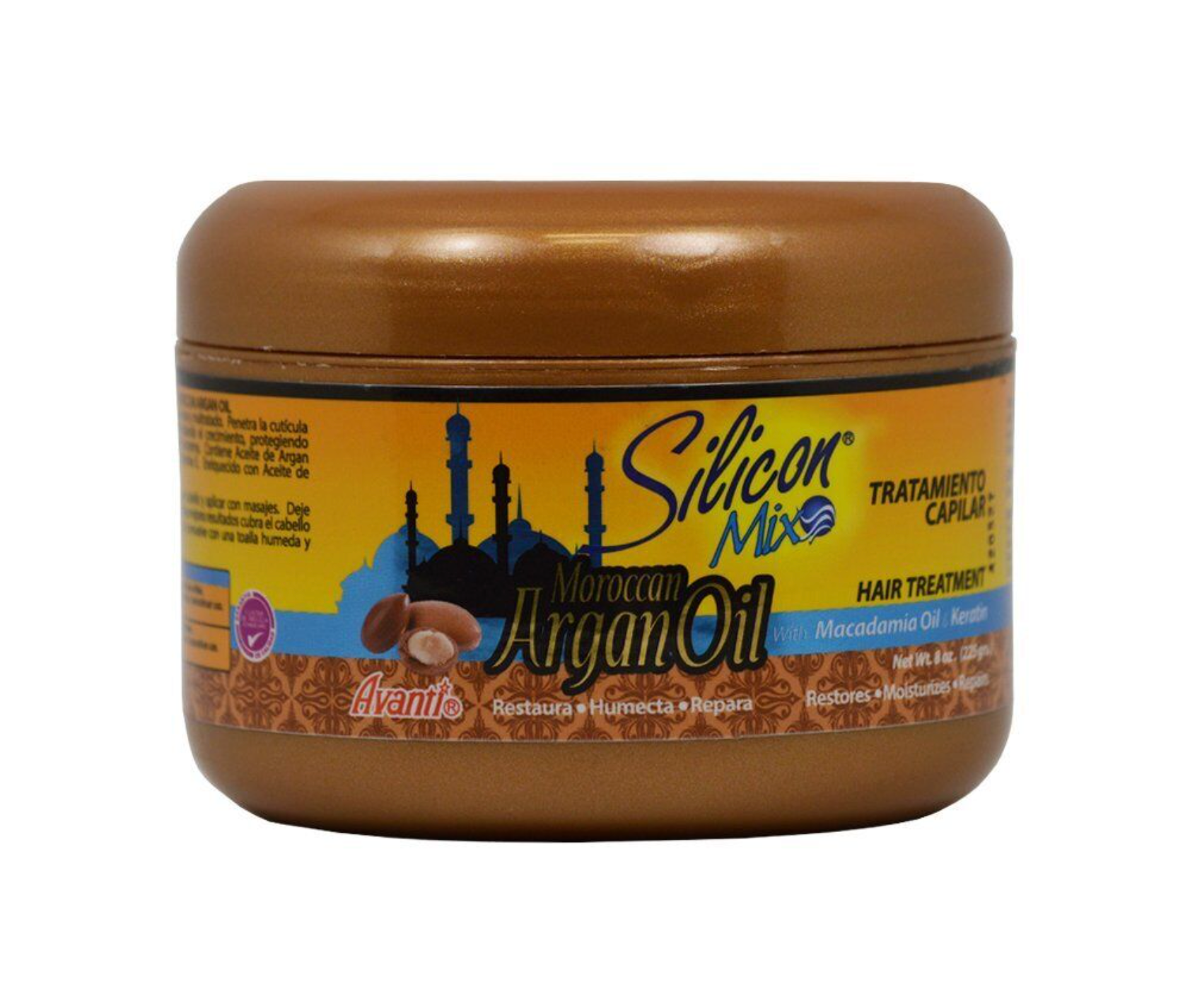 Silicon Mix Moroccan Argan Oil Hair Treatment Restores moisturizes soothes and repairs dry and damaged hair. Penetrates the hair shaft stimulating hair growth and elasticity. Protects against hair breakage adding extreme shine. Contains 100 Pure Argan Oil rich in Omega 6 Omega 9 and Vitamin E Macadamia Oil and Keratin enriched.